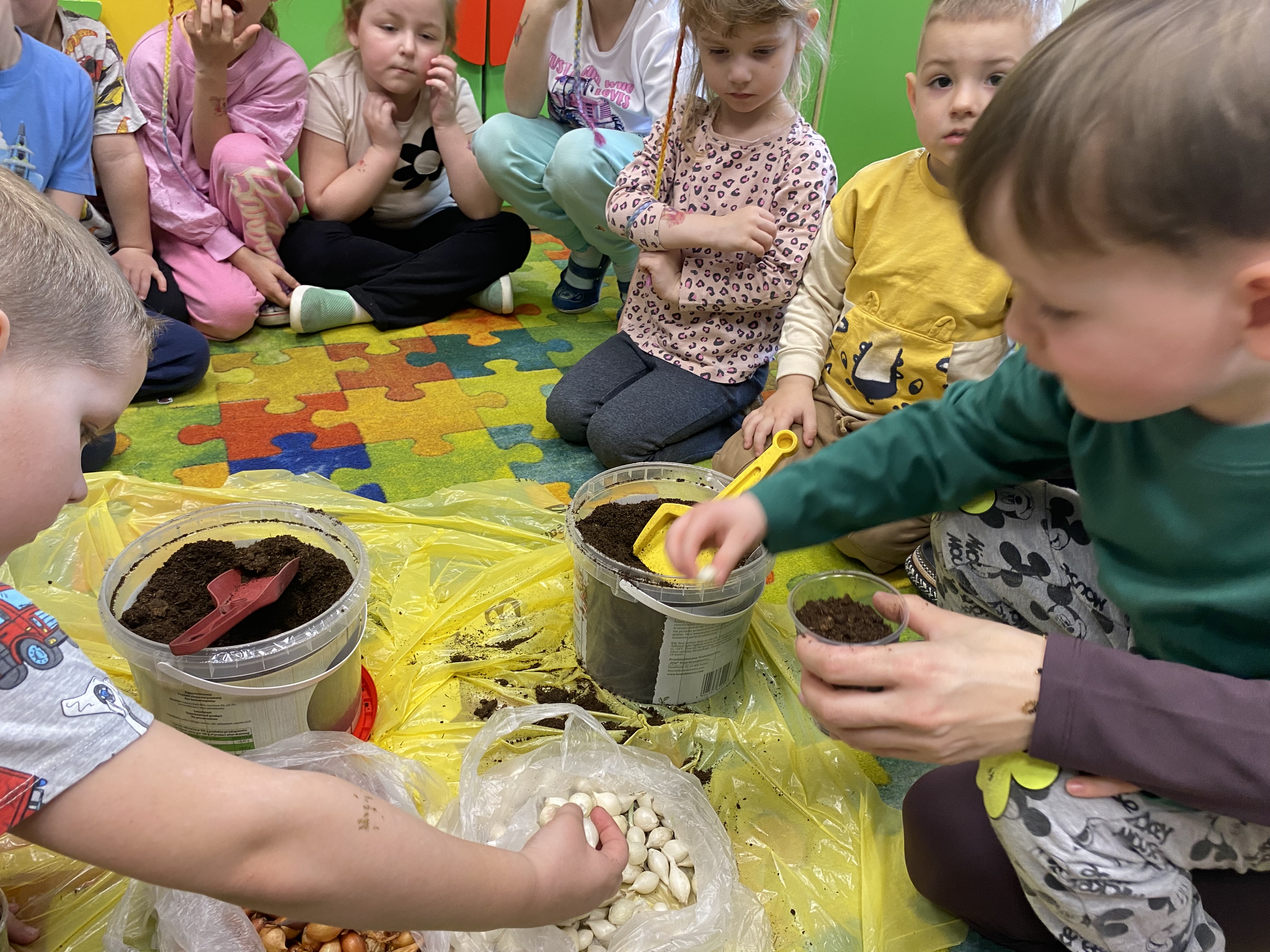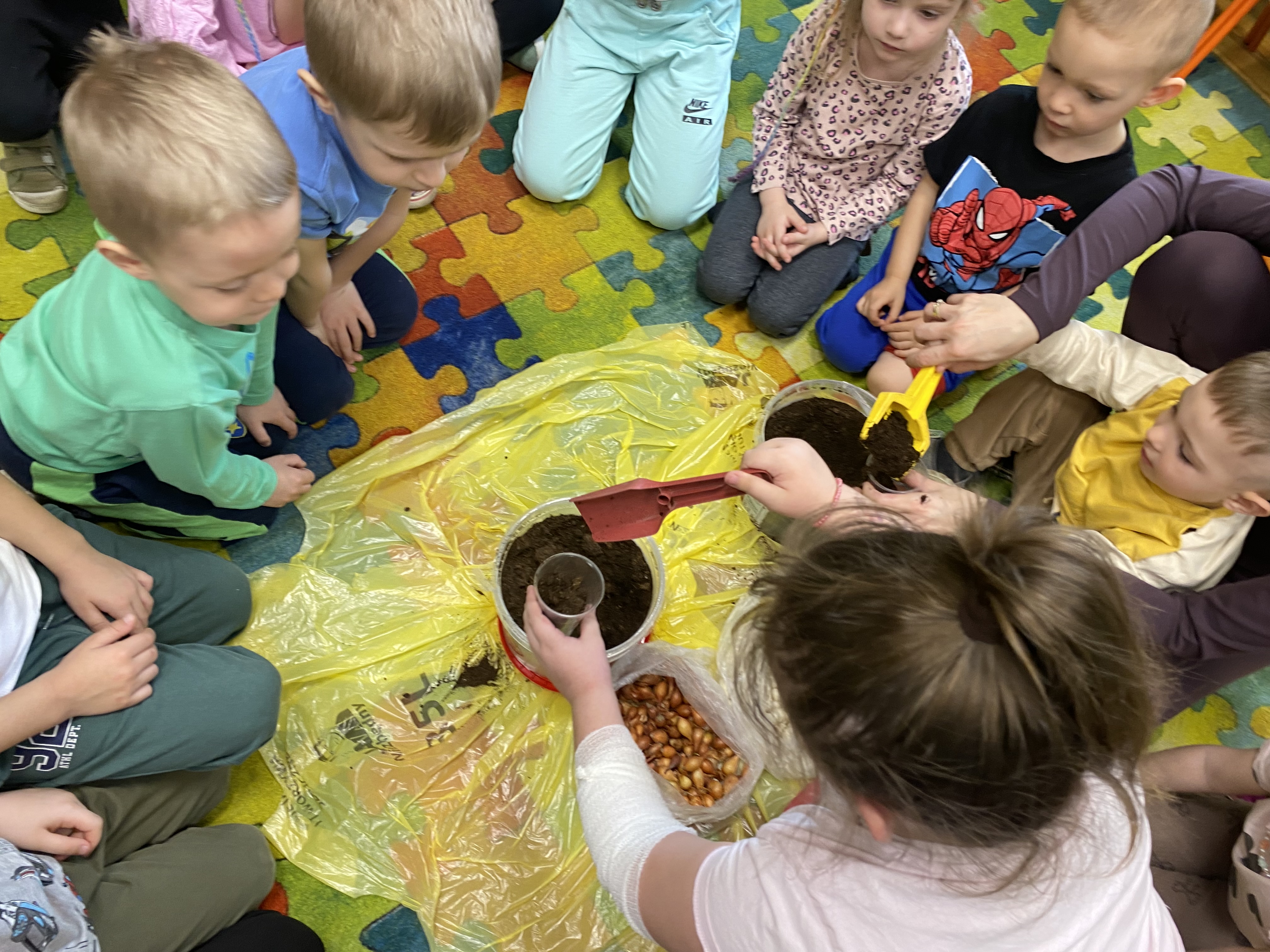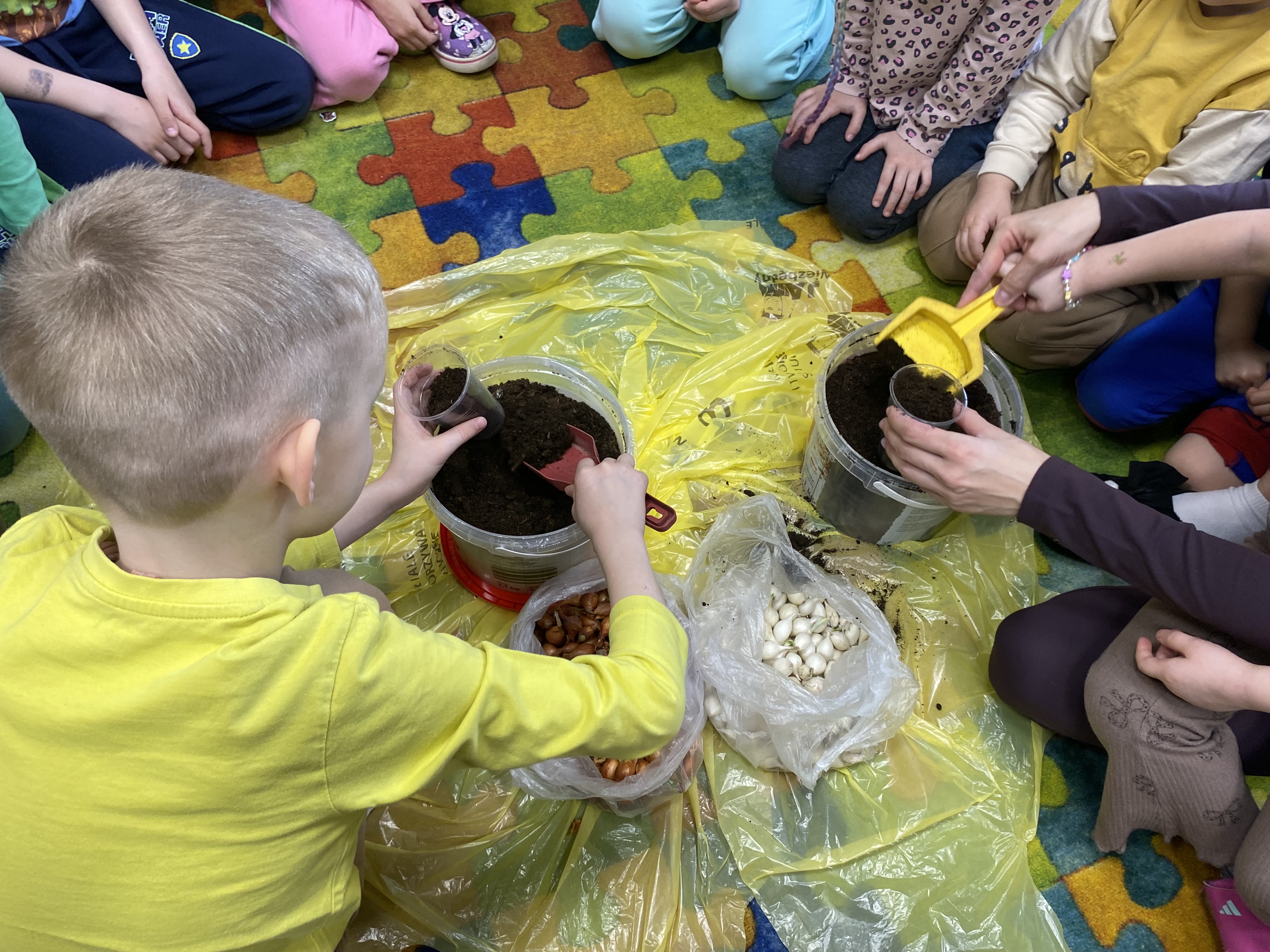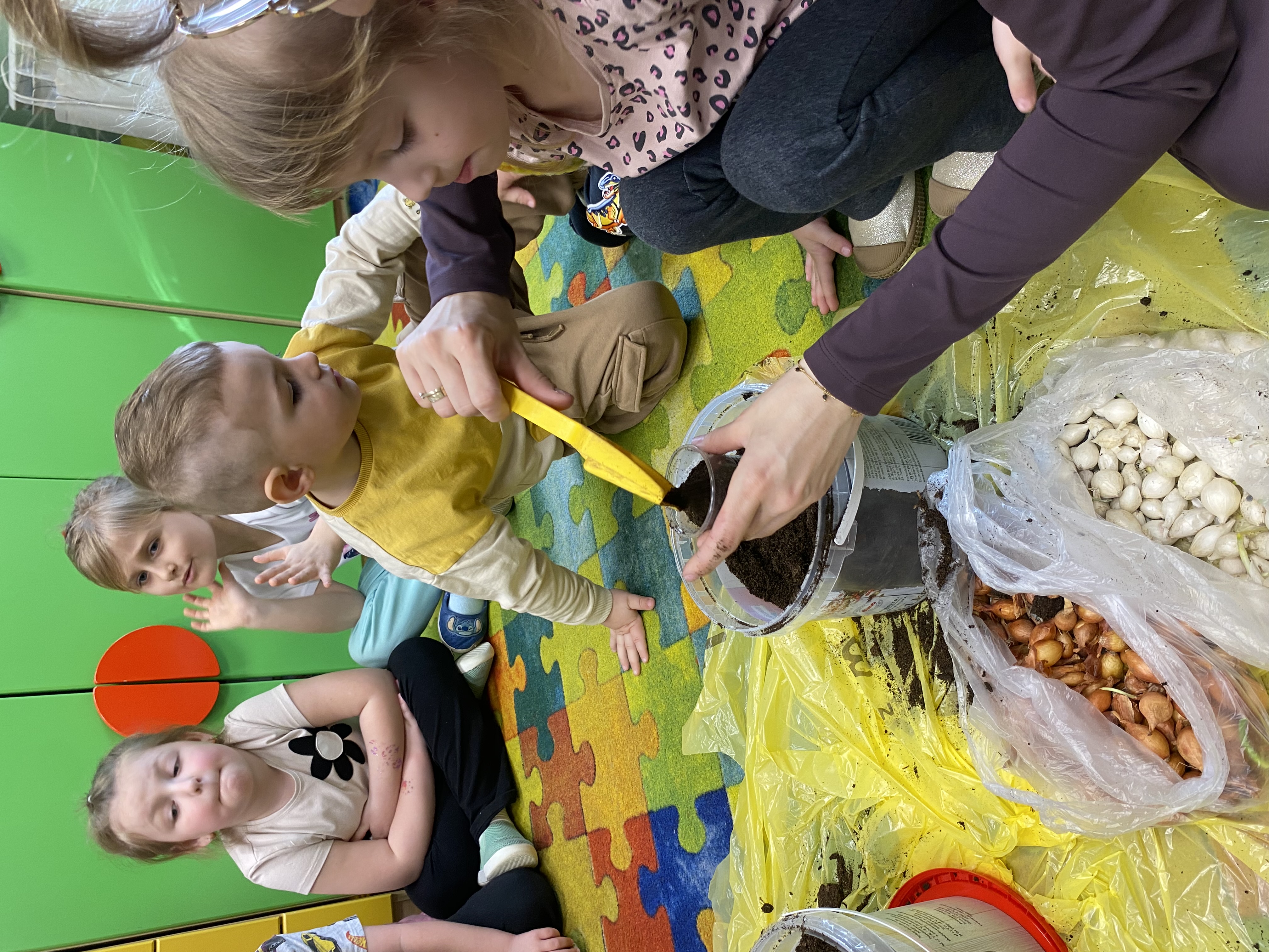 Projekt ten okazał się świetnym pomysłem na połączenie zabawy z nauką. Każde dziecko samodzielnie posadziło cebulki. W trakcie pracy przedszkolaki dowiedziały się, jakie warunki są potrzebne roślinom do wzrostu, jak ważna jest woda i światło oraz jak codziennie troszczyć się o swoje zielone przyjaciółki.