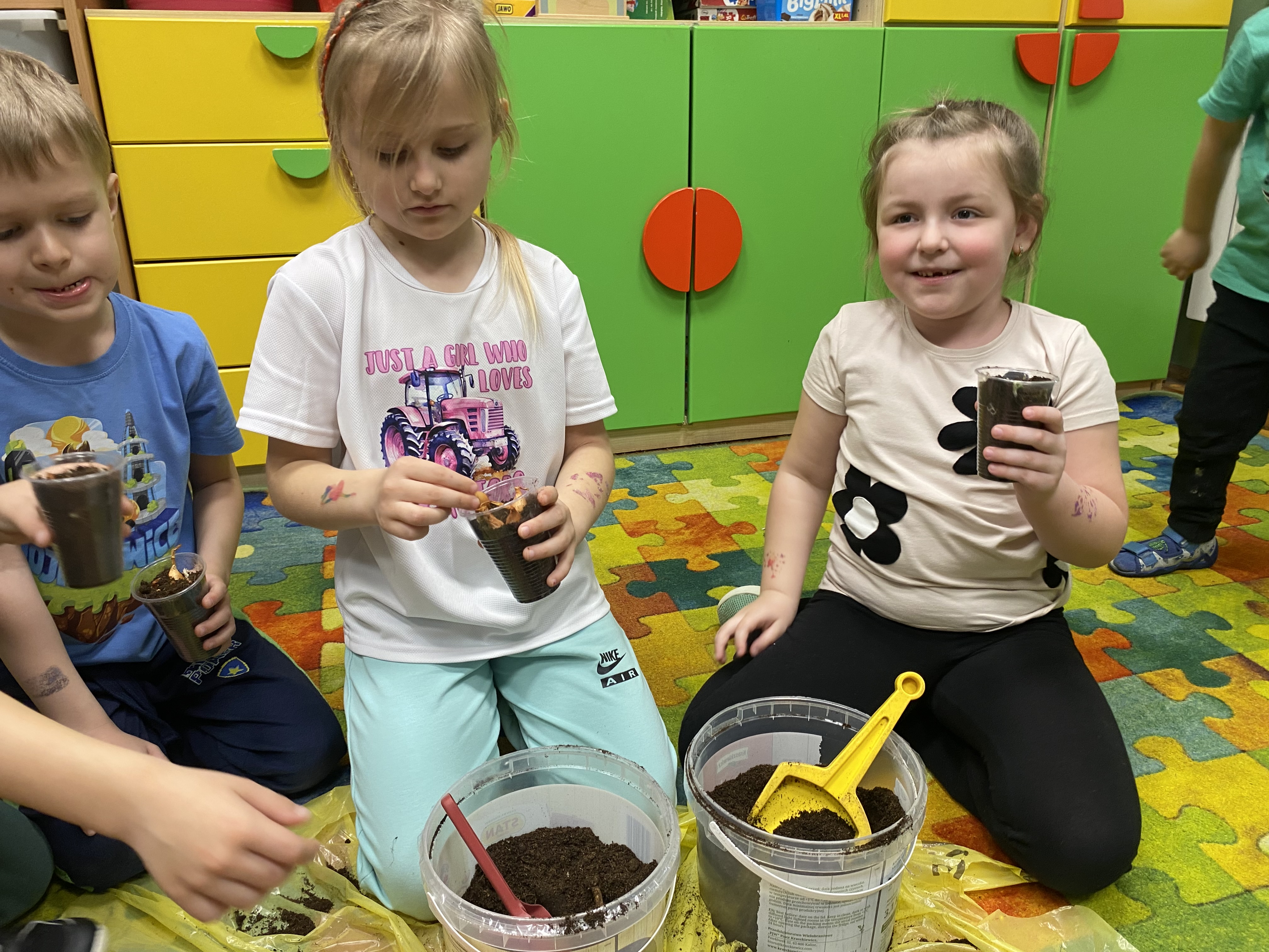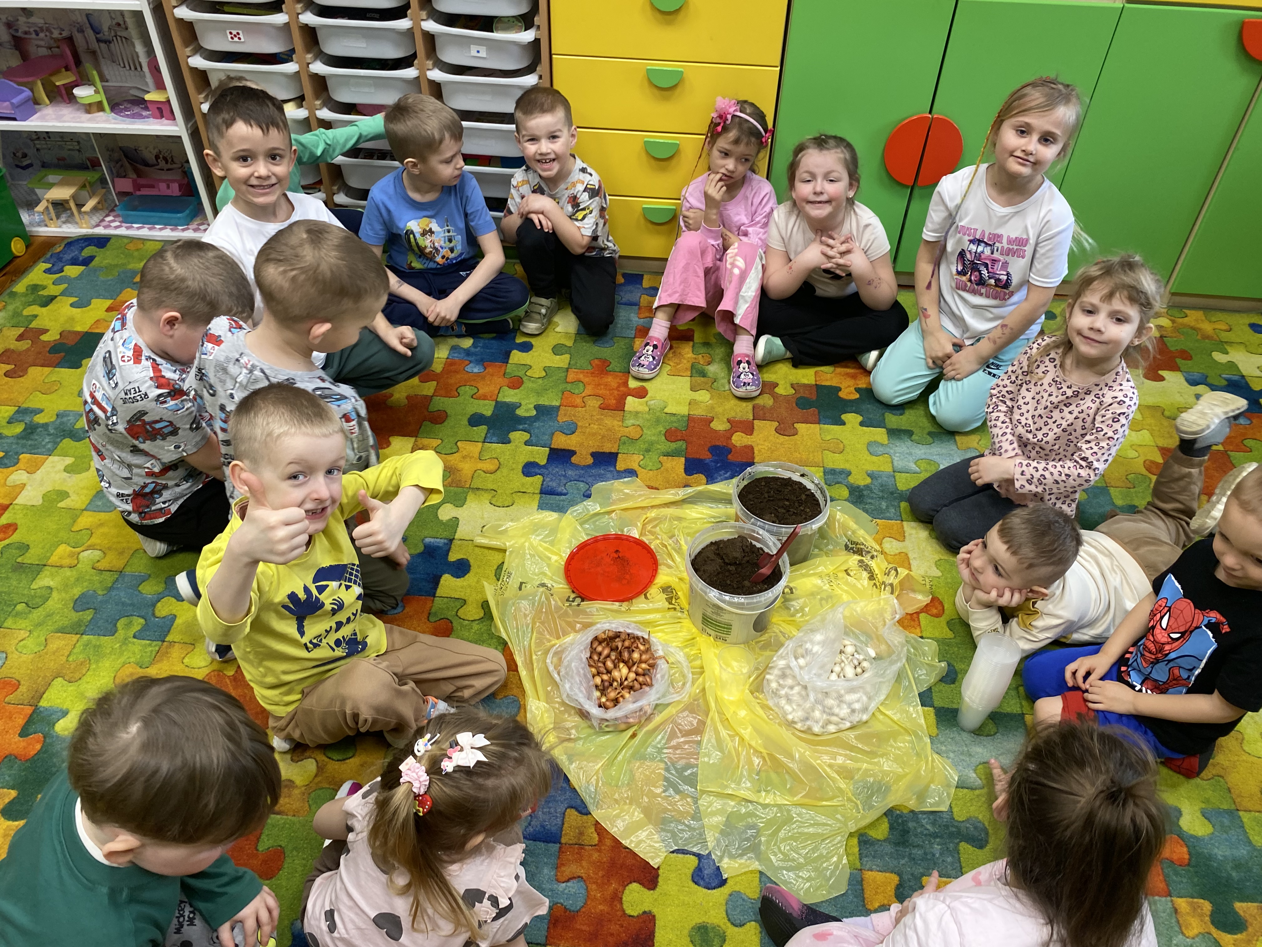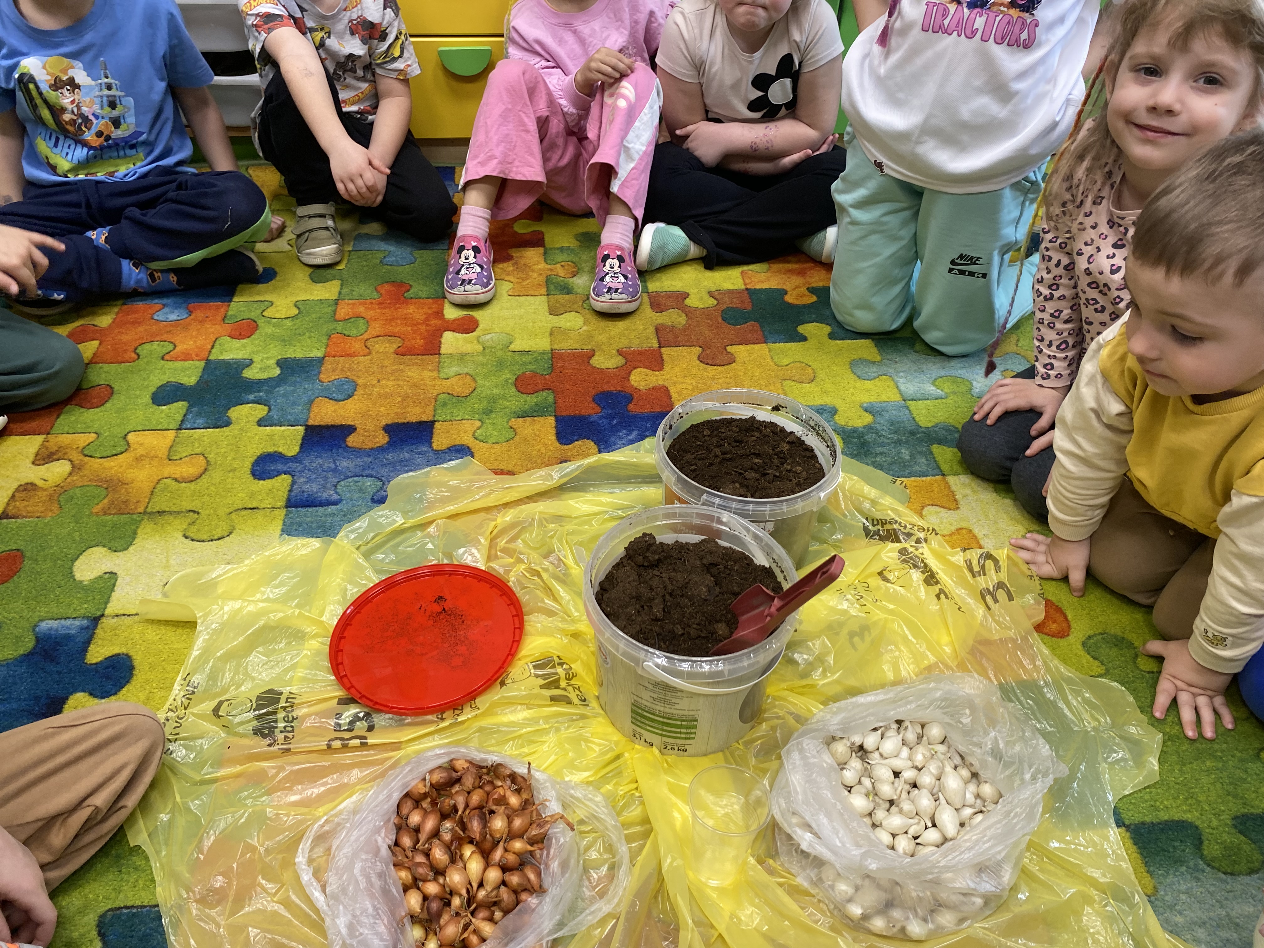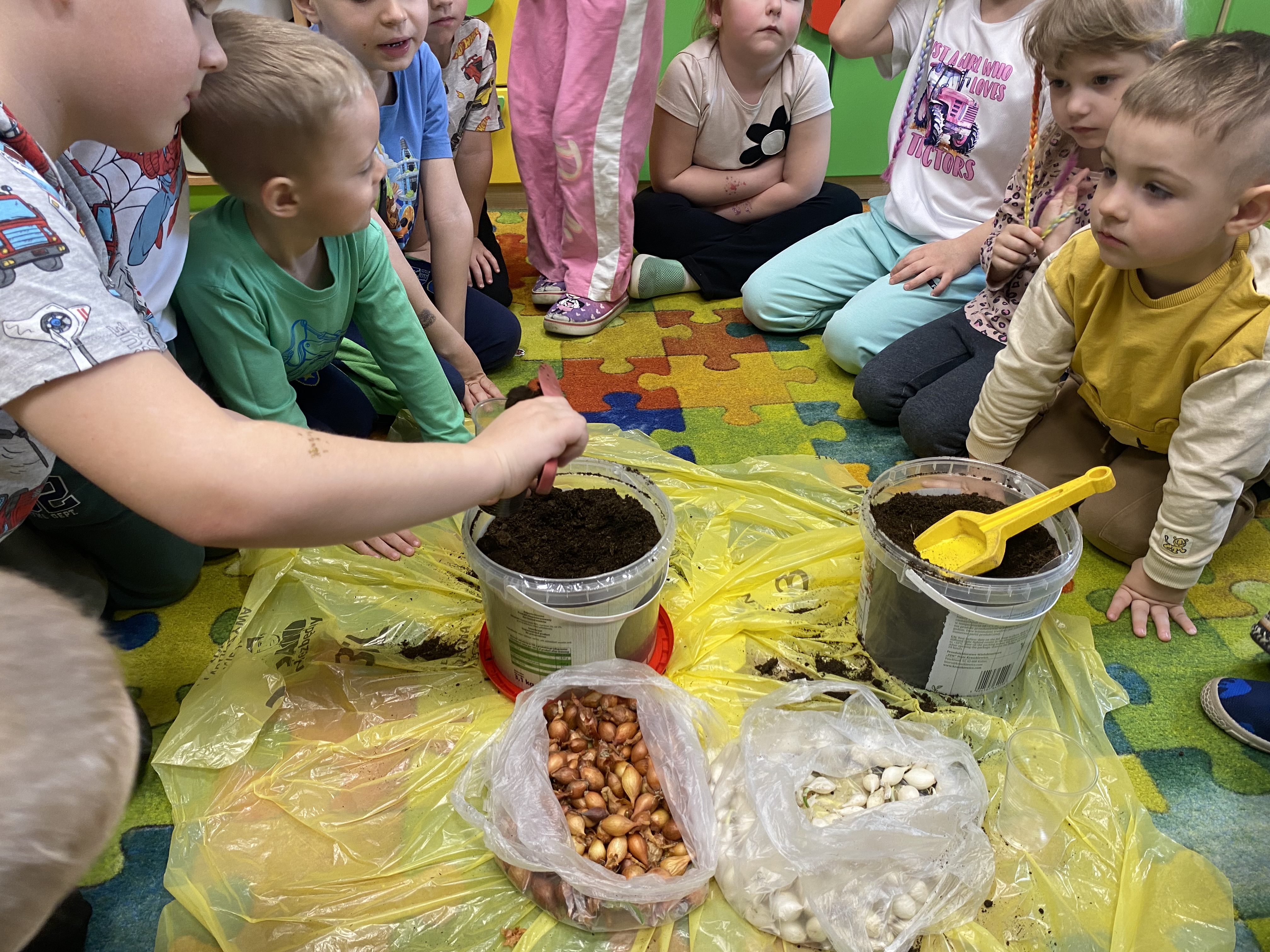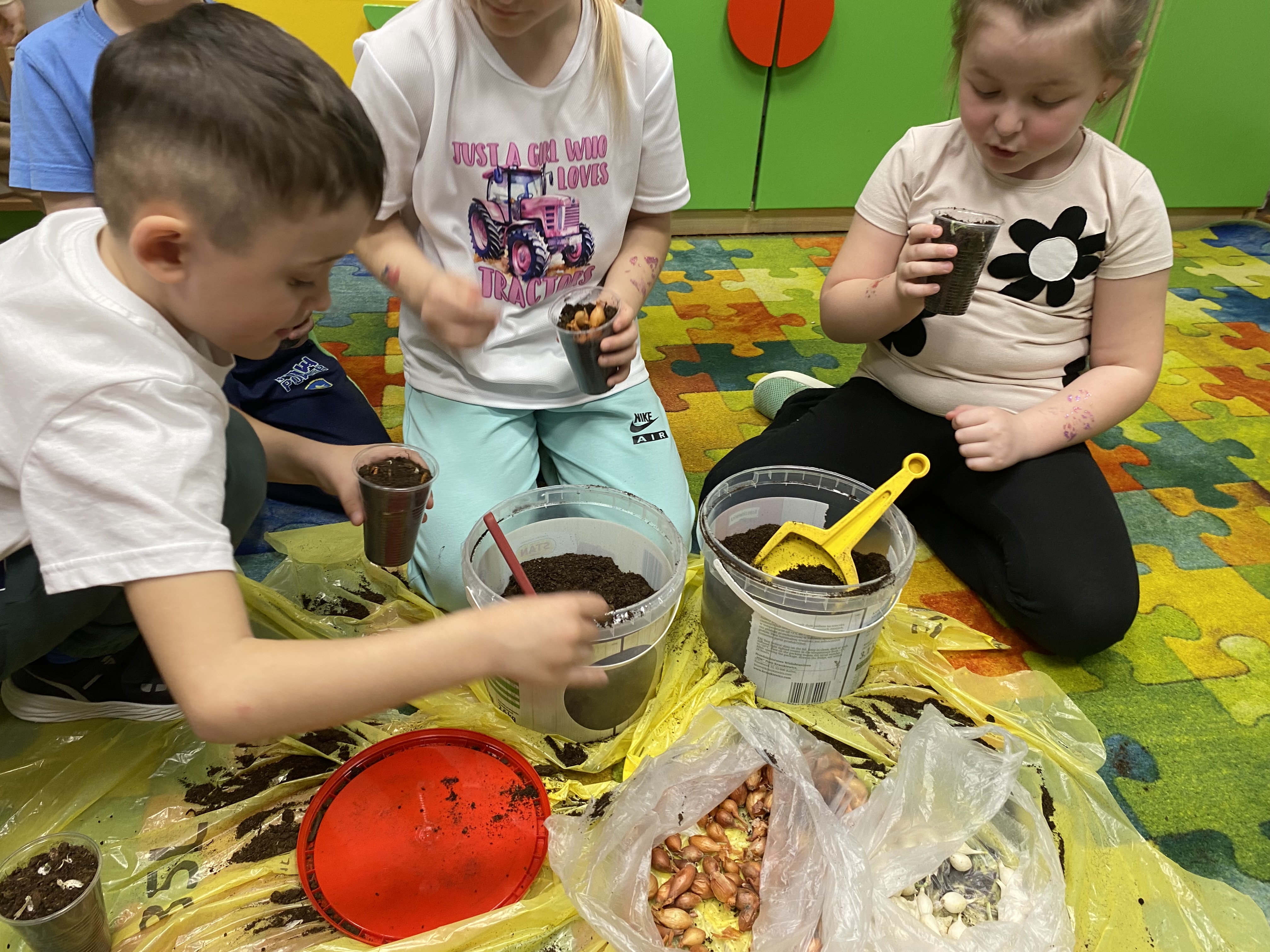 Projekt ten okazał się świetnym pomysłem na połączenie zabawy z nauką. Każde dziecko samodzielnie posadziło cebulki. W trakcie pracy przedszkolaki dowiedziały się, jakie warunki są potrzebne roślinom do wzrostu, jak ważna jest woda i światło oraz jak codziennie troszczyć się o swoje zielone przyjaciółki.